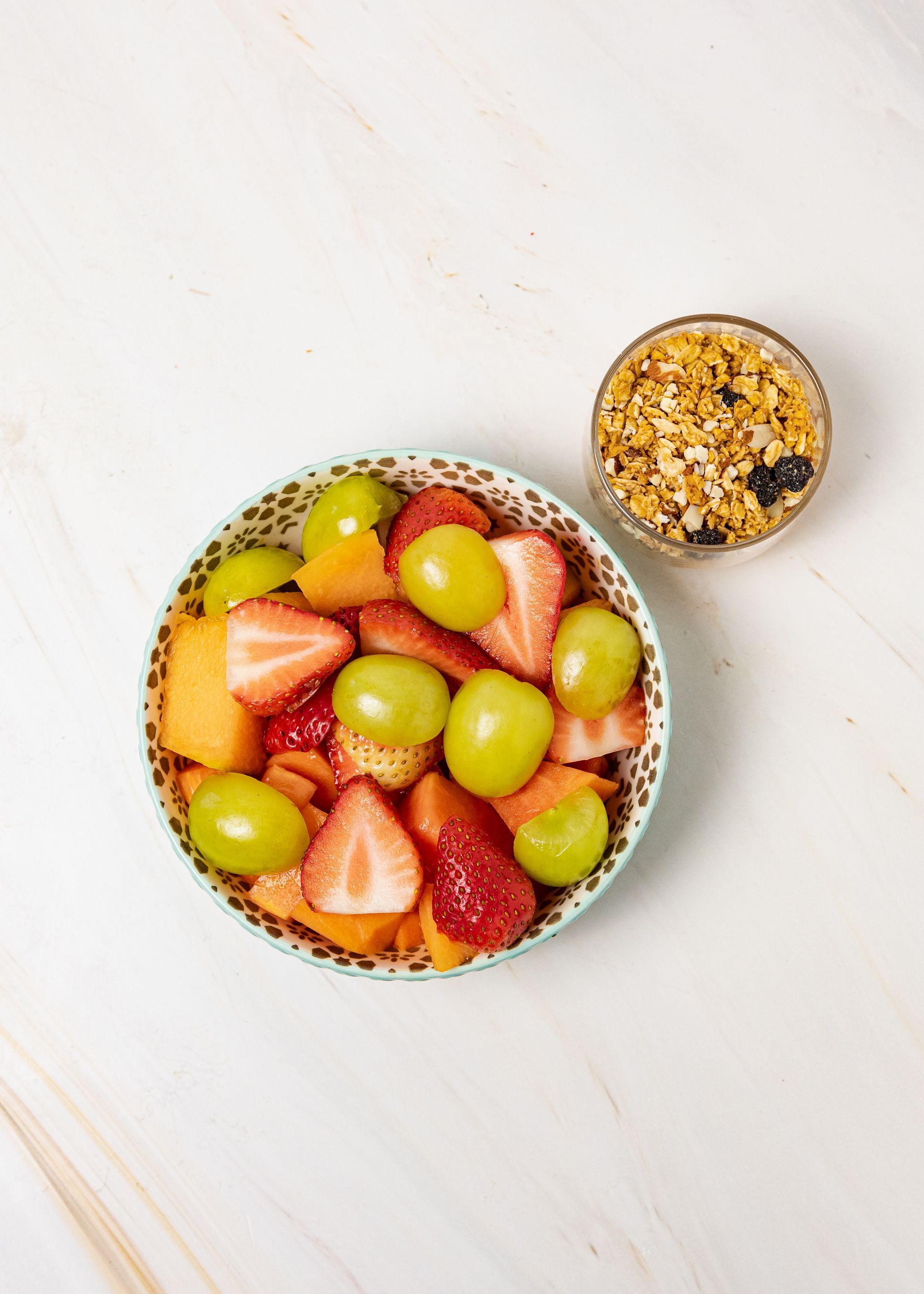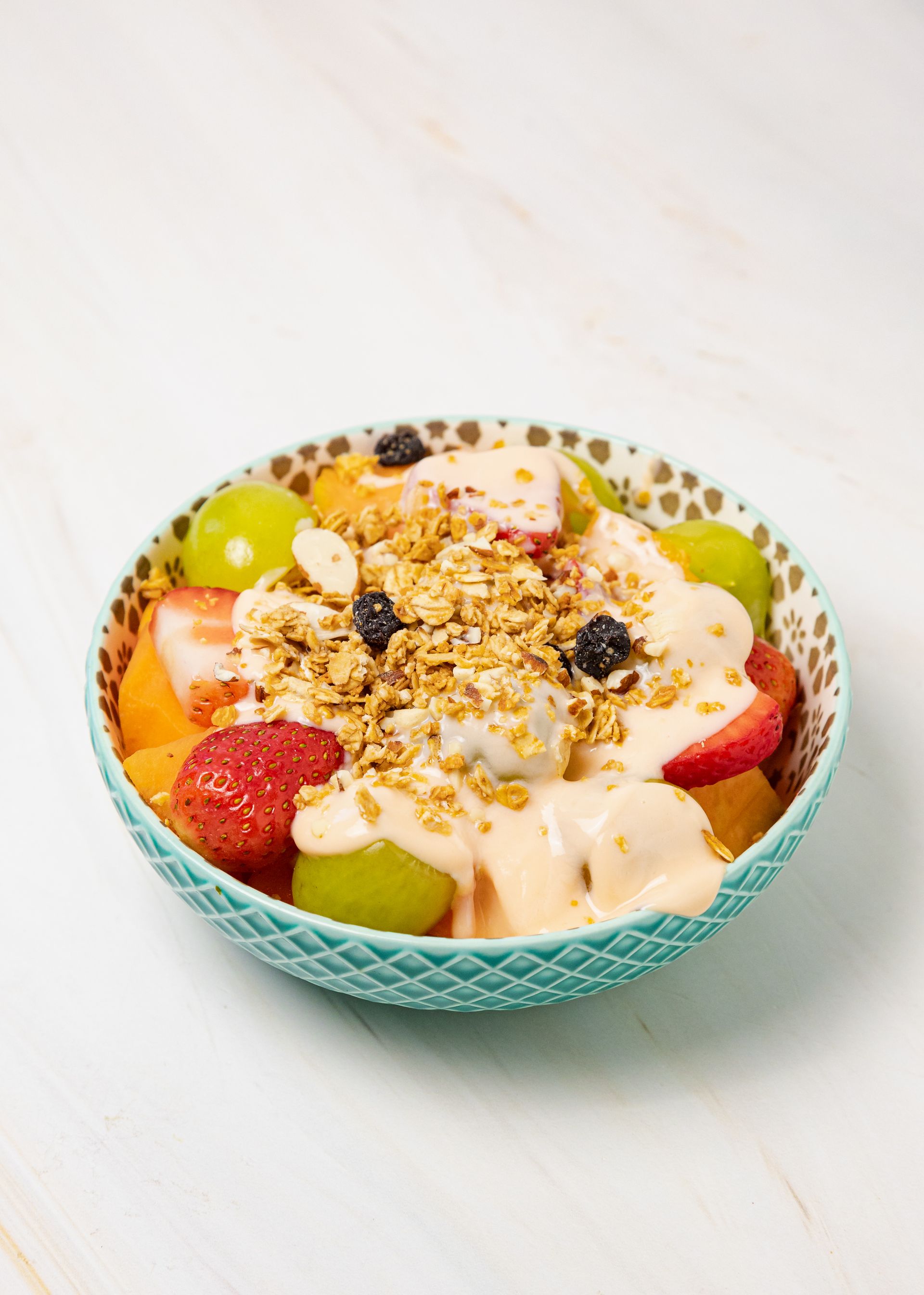 - Bowl de fruta temporada (incluye yogurt y granola)